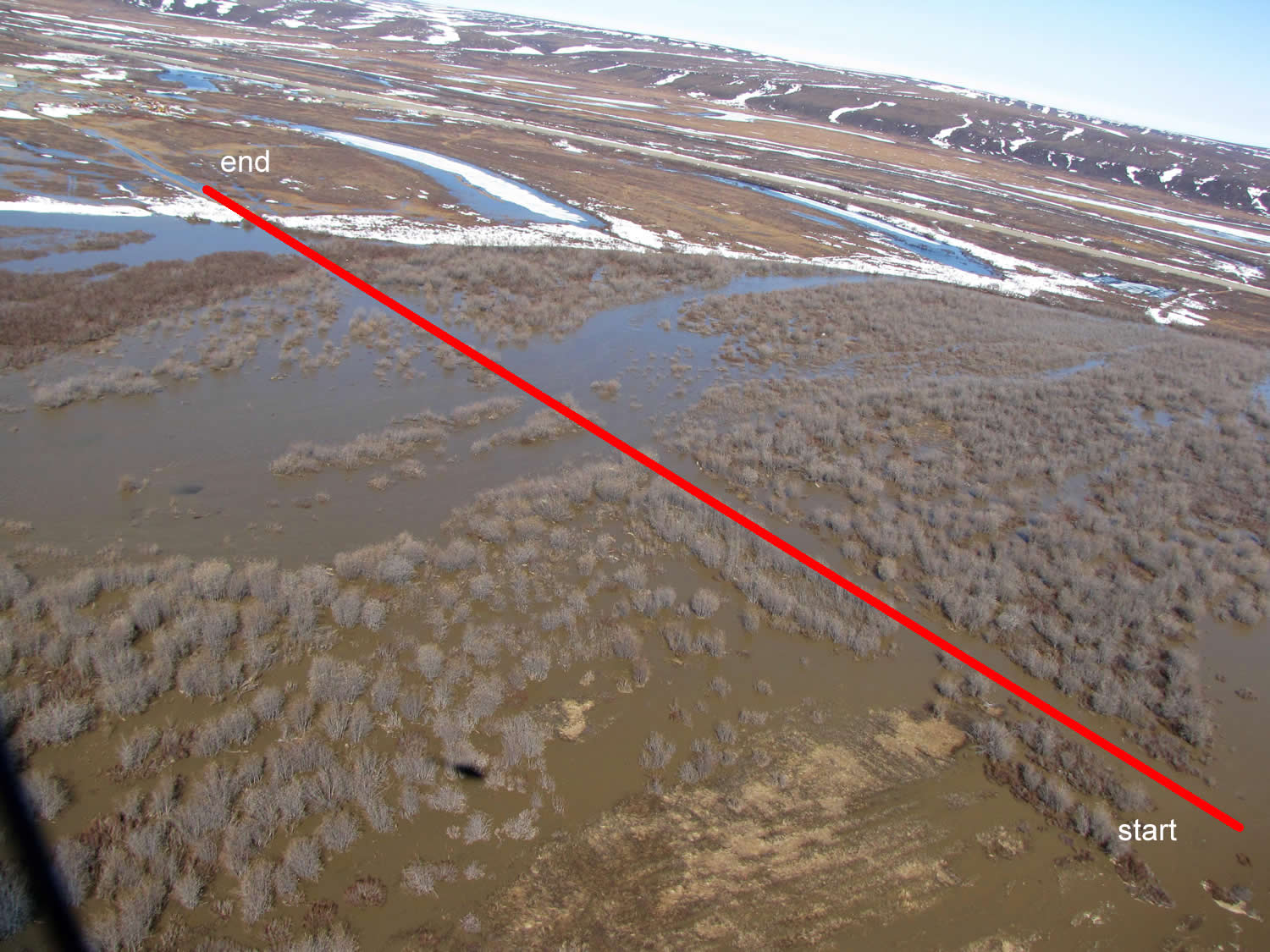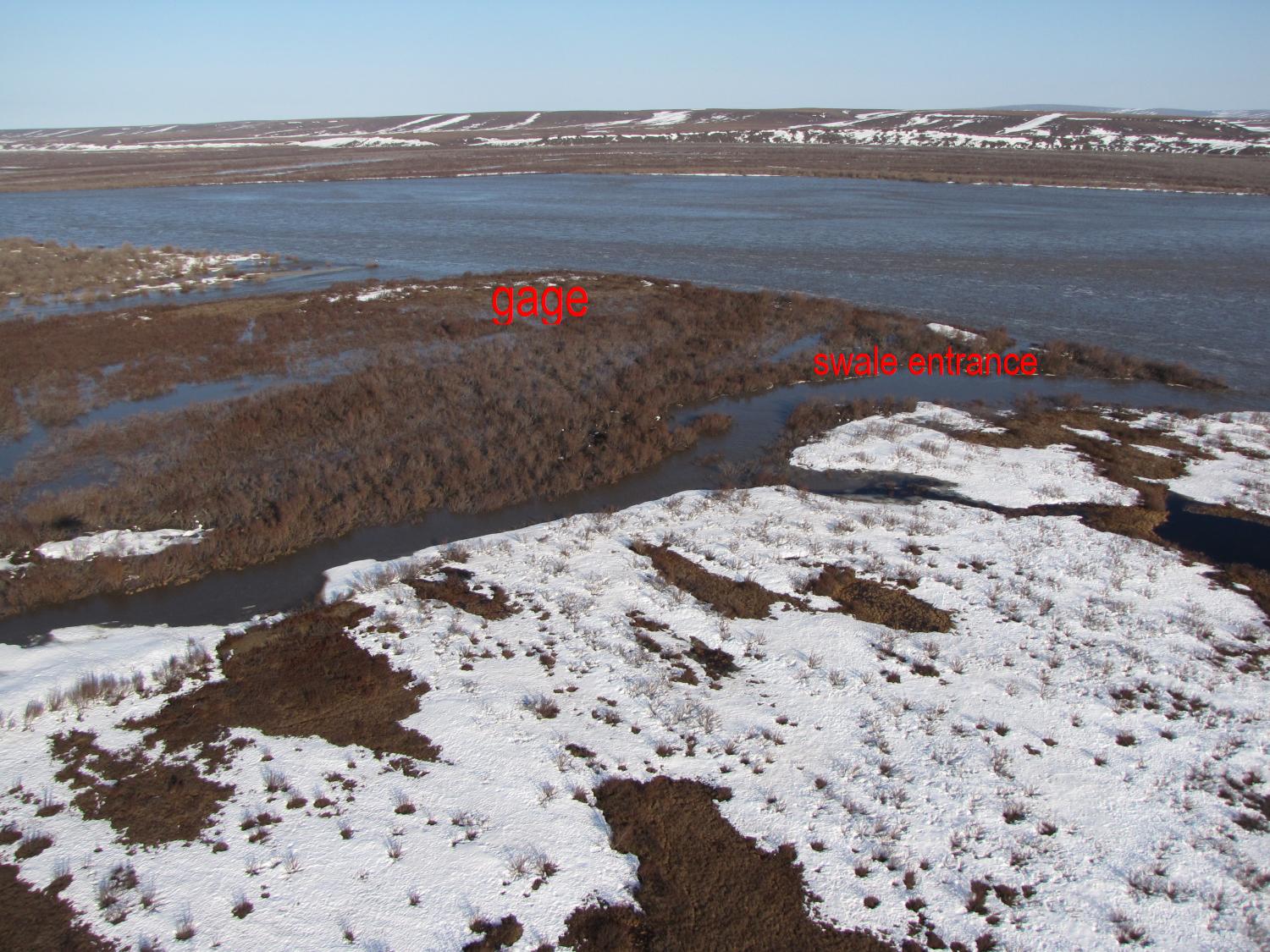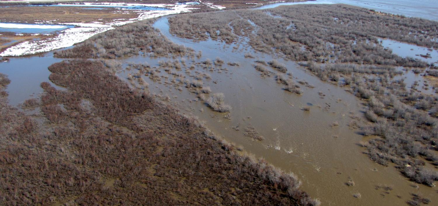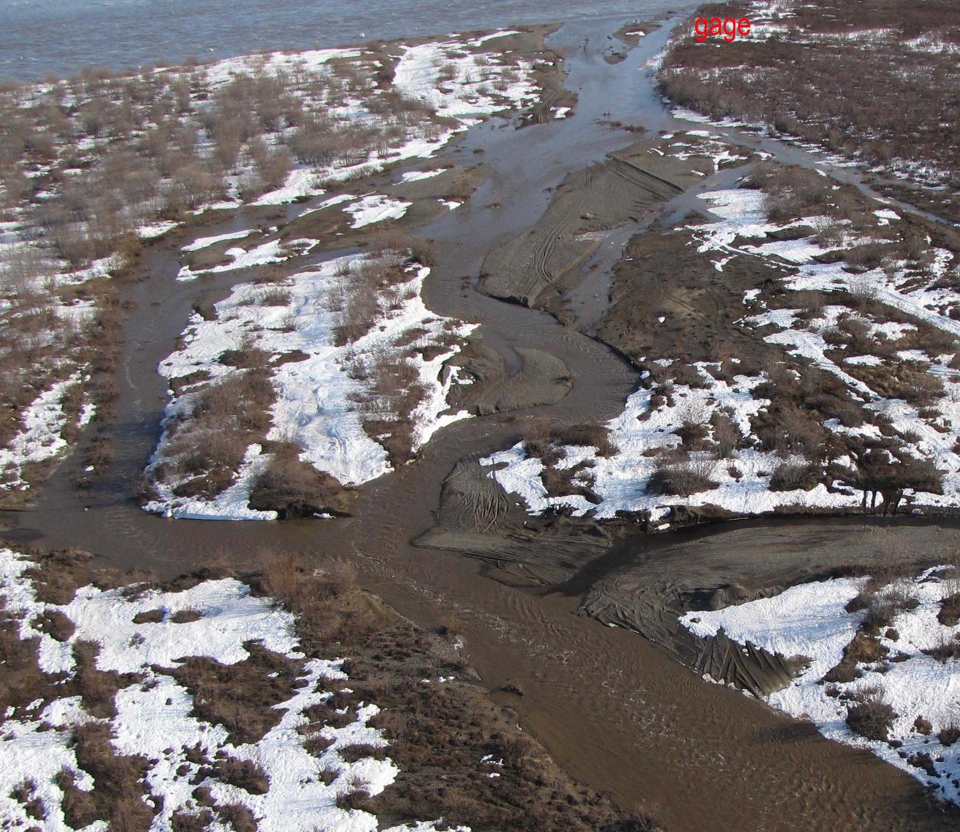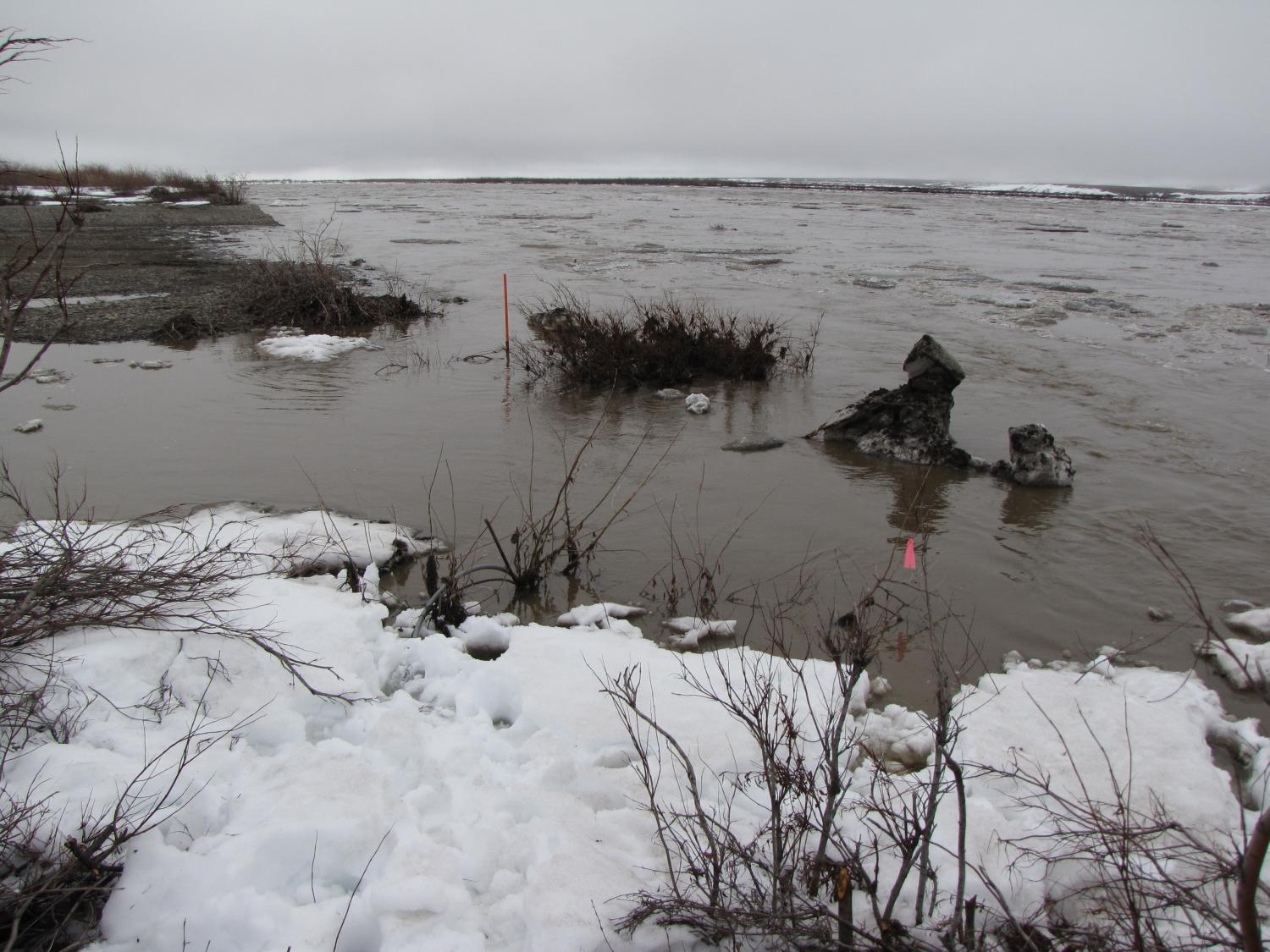 Colville River Begins flowing over landfill at 53.5 ft stage (75,000 cfs) (USGS Rating 3)